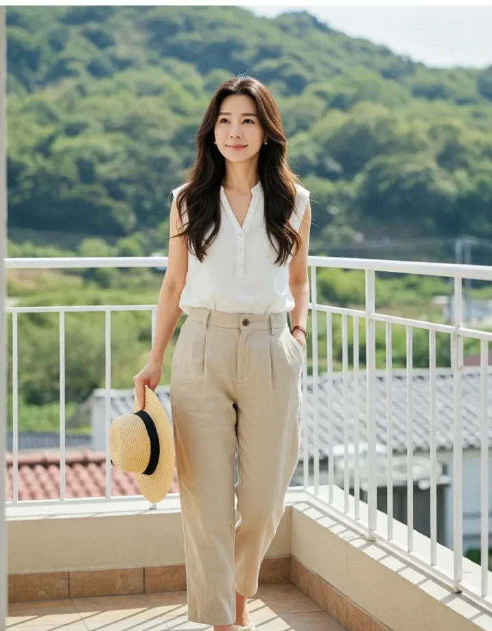 Sleeveless White Blouse and Linen Trousers for Breezy Days