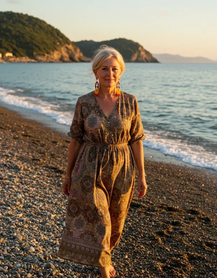 I absolutely love how easy yet expressive this outfit feels. It s cozy enough to wander barefoot on the beach, but still stylish enough to catch a compliment or two. The print is beautifully detailed, and those earrings are just plain fun. Honestly, this is the kind of look I reach for when I want to feel grounded and gorgeous all at once. It s quiet confidence in jumpsuit form.