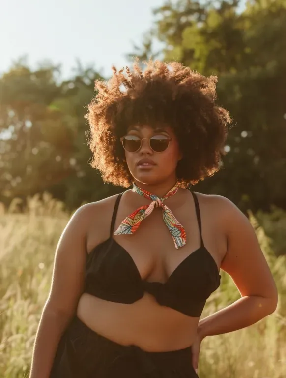 I absolutely love how chic and comfortable this bikini feels! The knot detail on the top adds a modern touch, while the classic black keeps things sleek and stylish. The high-waisted bottoms are not only flattering but also give off that retro pin-up look I m completely here for. And let s not forget the accessories the scarf and sunglasses take this swimsuit to the next level of fabulous. This is the kind of outfit that makes you feel confident and stylish, whether you re lounging by the pool or taking a walk along the beach. It s a timeless look that still feels fresh and fun!