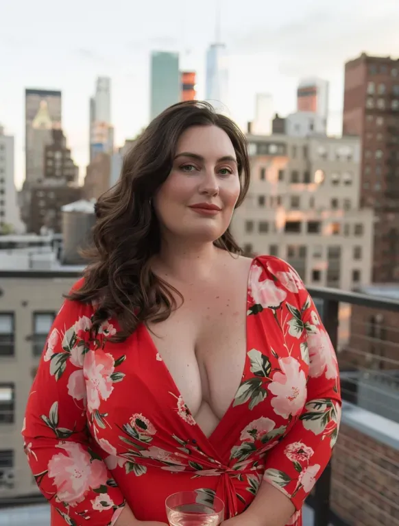 This bold red dress with vibrant floral prints is a stunning choice for the warmer months. The wrap-style silhouette hugs the body beautifully, while the deep V-neckline adds a touch of allure. The flowy skirt offers plenty of movement, making it perfect for those breezy summer days. Gold accessories like hoop earrings and layered necklaces elevate the look, making it feel effortlessly chic and casual at the same time.