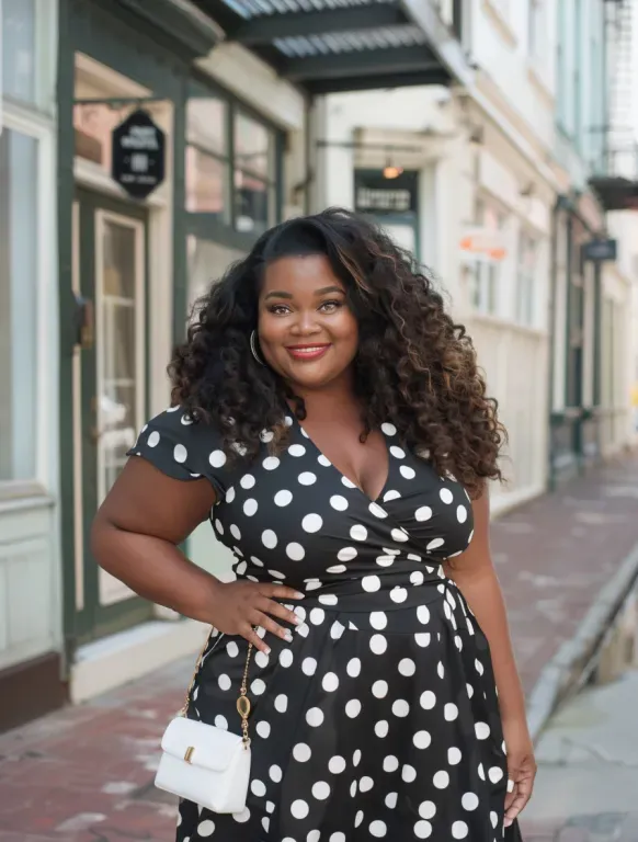 I can’t get enough of this dress! The polka dots are timeless, and I just love how they bring a cheerful, vintage vibe to the outfit. The wrap design accentuates the curves in such a flattering way while still being casual and easy to wear. Plus, this dress is versatile enough to wear for a lunch date or even a night out. It s effortlessly chic, making it the kind of outfit you can wear and feel fabulous in without trying too hard.