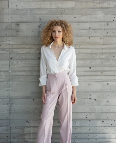 Crisp White Shirt and Blush Tailored Trousers for Effortless Elegance