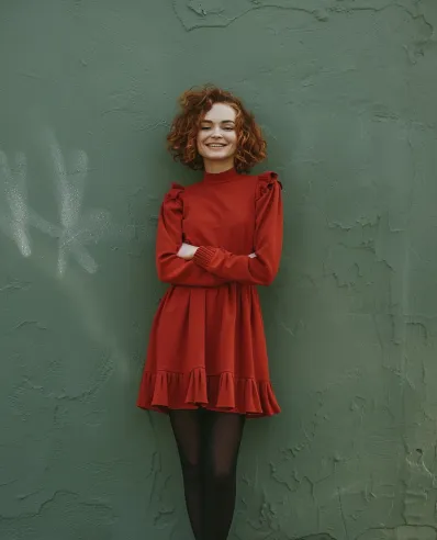 I absolutely love how this outfit balances comfort and style. The bright red color is perfect for Valentine s Day it s bold, cheerful, and totally eye-catching. And can we talk about those ruffles? They add such a fun, feminine touch! Pairing it with tights and boots makes it ideal for outdoor dates or casual evenings. Honestly, this is the dress you d wear if you wanted to say, I look amazing, but I m not even trying that hard.â