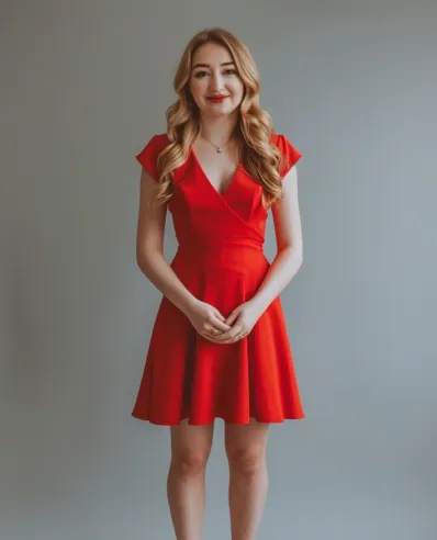 I adore how simple yet stunning this dress is it s one of those outfits that you can always count on to look amazing. The bright red color is a nod to Valentine s Day traditions, and the playful skirt adds a fun, youthful charm. It s the kind of dress that s made for twirling (because who doesn t love a good twirl moment?). This is definitely a go-to for a romantic dinner or a night out dancing.