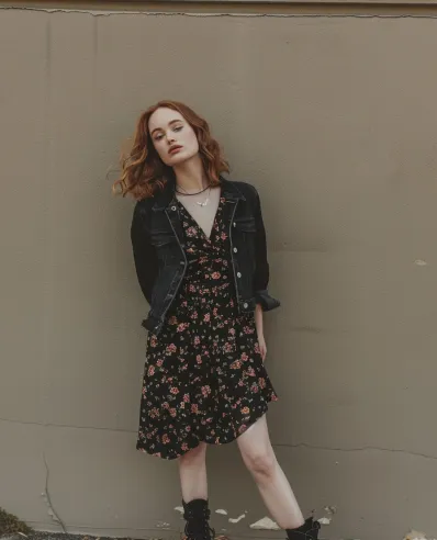 This outfit strikes the perfect balance between sweet and edgy. The black floral dress flows effortlessly, giving off a relaxed, feminine vibe. Adding a cropped black denim jacket toughens up the look just enough, while keeping it casual and versatile. Of course, the lace-up moto boots steal the show, grounding the delicate florals with their bold, structured style. It s the kind of look that says, I can be soft, but I mean business.â